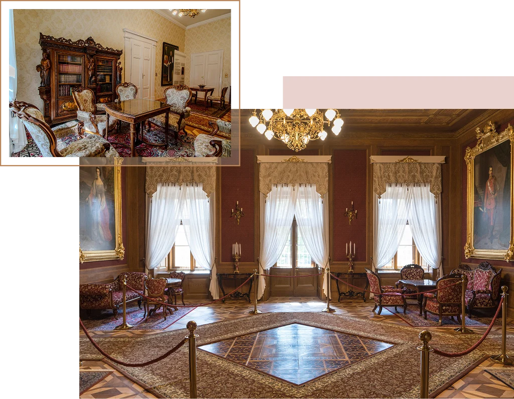 Korabeli bútorzatok, falfestés és csodás festmények jelenítik meg a 19. század hangulatát. A Királyterem a monostor nyugati szárnyával egy időben,1844–1846 között épült. Sajnos az eredeti tervek és az eredeti berendezési tárgyak is elpusztultak a történelem viharaiban. Az apátság reprezentációs terében királyi és főúri vendégek szálltak meg.