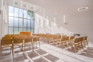 A ház nemcsak kényelmes szállás, hanem valódi lelki és kulturális élményt nyújtó helyszín is. Kápolnánk csendje és a vallási tematikájú kiállítások segítik a feltöltődést, a nagyobb tér pedig előadásoknak, koncerteknek is ideális. A kis park, a kerékpárbérlési lehetőség és a sportpálya pedig aktív kikapcsolódást kínál.